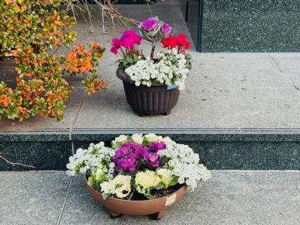 昨夜。西湘園芸さんが本堂向拝下に寄せ植えの鉢を4鉢持ってきてくれました。 有難いです。