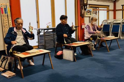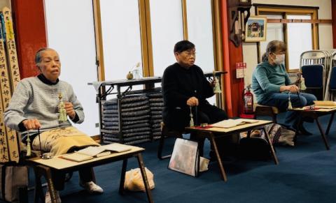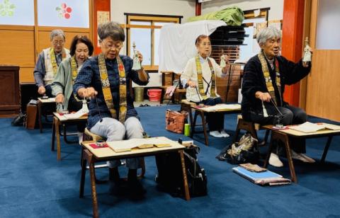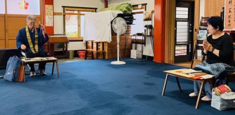 午前9時半より本堂外陣でご詠歌の練習。来週の秋期考査に控え最後の練習。❝月光❞半拍の息継ぎ確認。❝札打和讃❞よくできていました。
