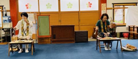 午後1時半より本堂外陣で御詠歌の練習。❝華厳❞斉唱。独唱。所作の確認。❝假現❞斉唱。頭独唱。節の確認。❝札打和讃❞斉唱。❝称名❞斉唱。
