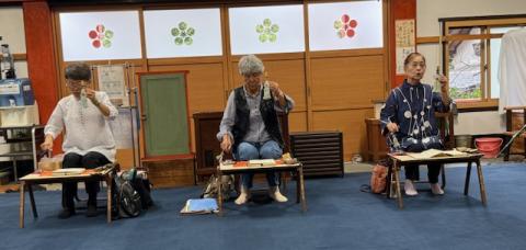 二曲とも経本を閉じて暗譜で唱える練習も行う。