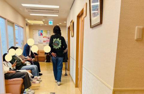 治療を終えて診察室から出てきた時は、患者さんでいっぱいだった。連休明けとのこと。