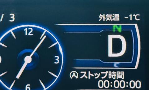 朝車に乗ったら車外温度が-1℃。昨夜、雨が降ったのでフロントガラスは凍っていて前が見えず溶けるまで暖気運転。